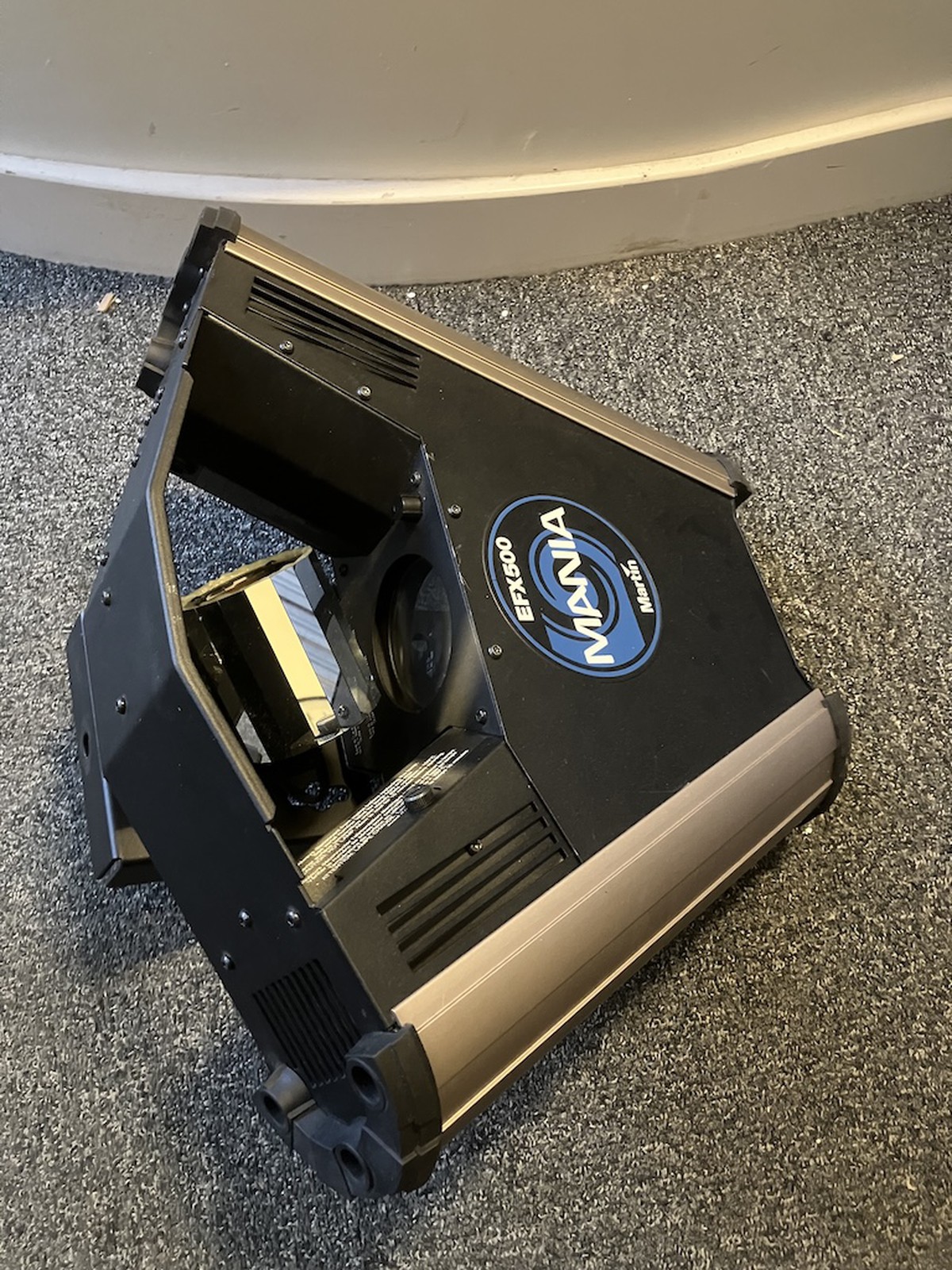 4 Used Martin Mania EFX500 lights. Some damage to some of the mirrors but work fine with this damage. Would like £200 for all four lights.The Mania EFX500 is a powerful, “full house” 250 W halogen effect that kicks out a dizzying array of razor sharp effects and patterns.