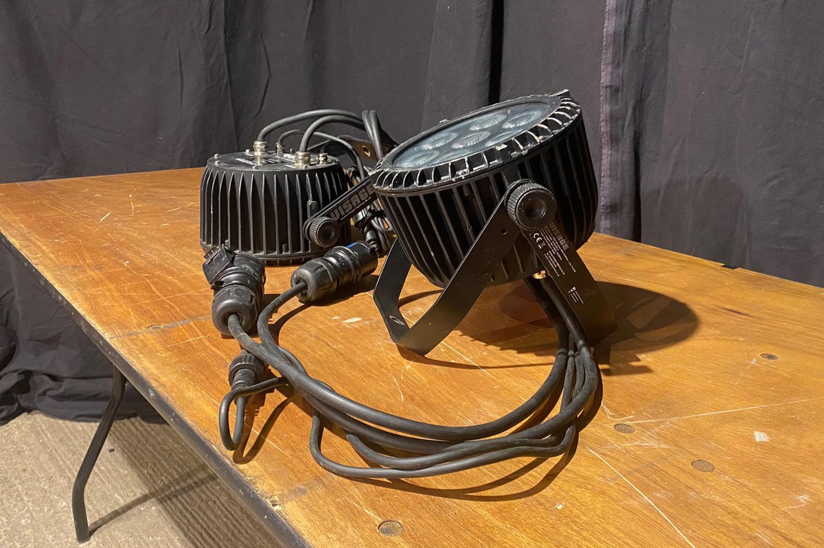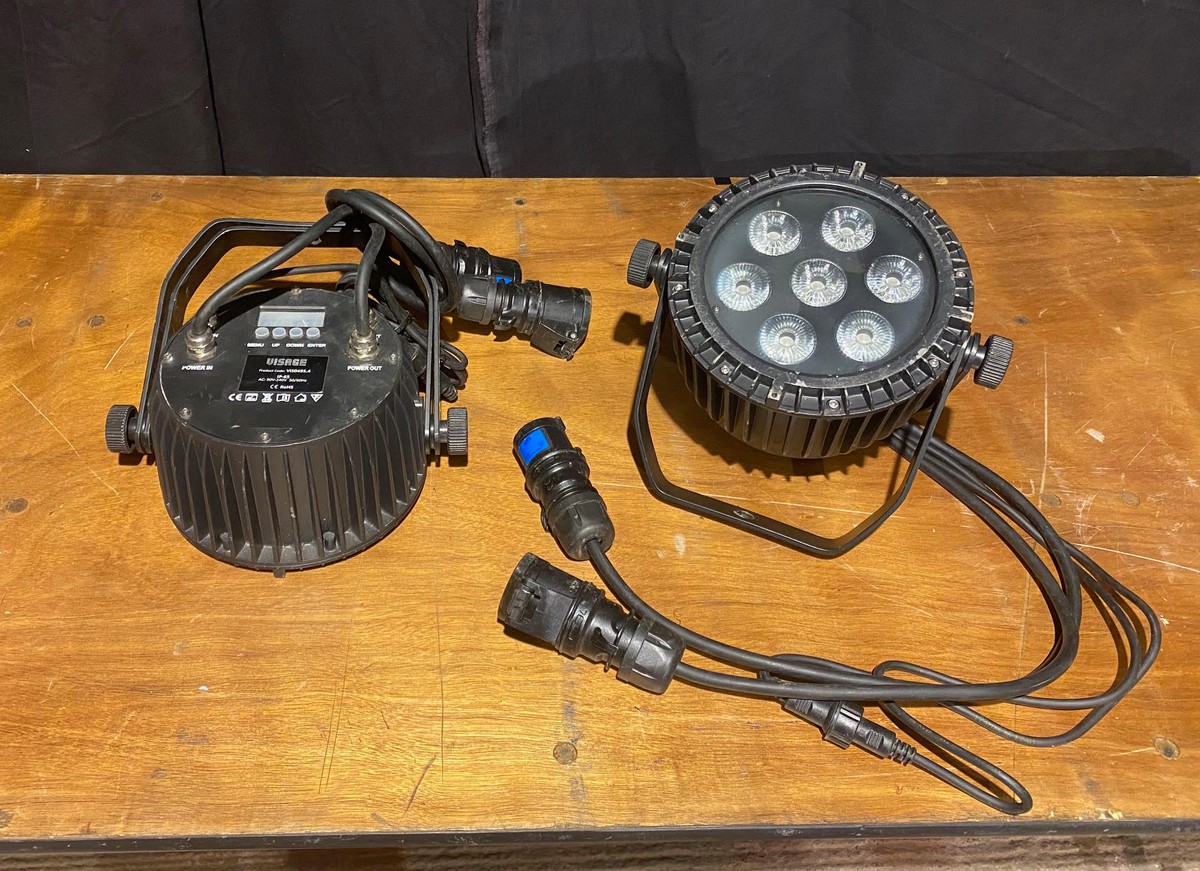 2 of Visage Slimline LED par cans in good used condition.The lights are fitted with 16A plugs & sockets as well as IP rated DMX connections.