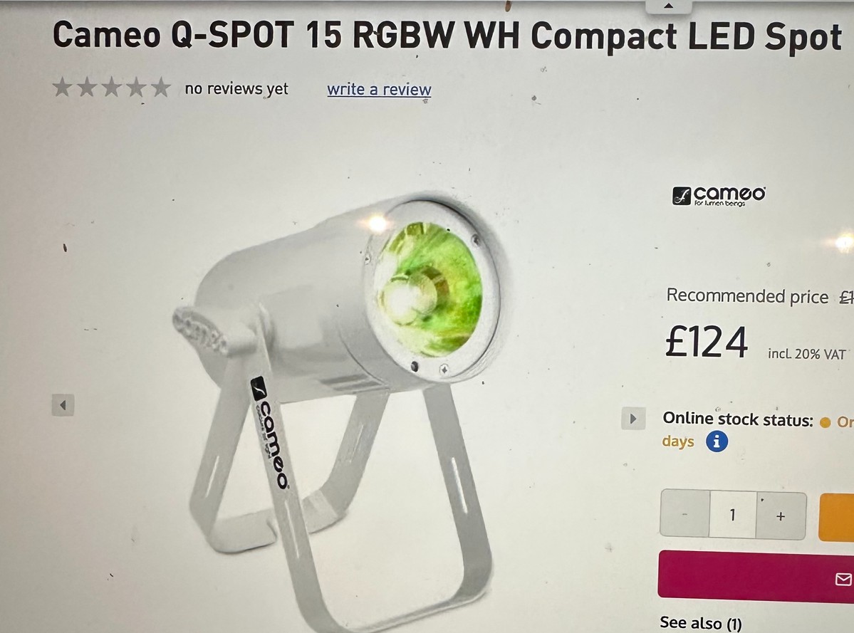 1 x Superfly XS cameo colours of Light2 x Q Spot 15 RGBW spot light