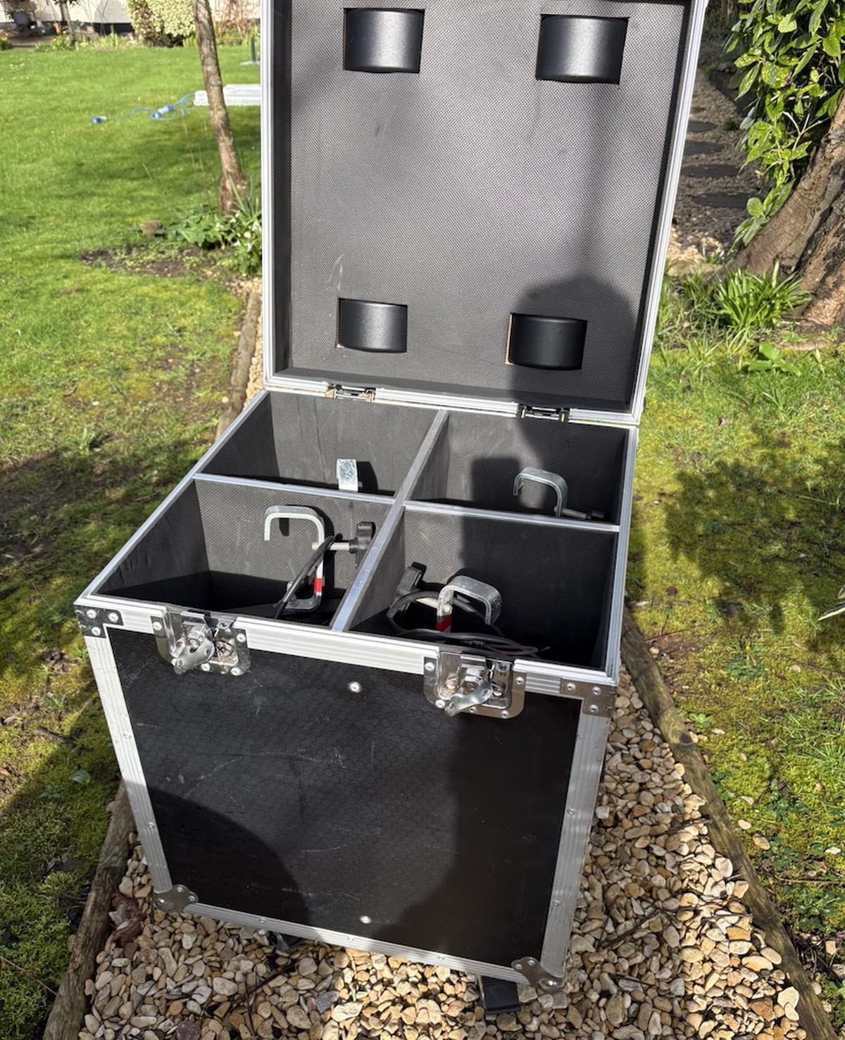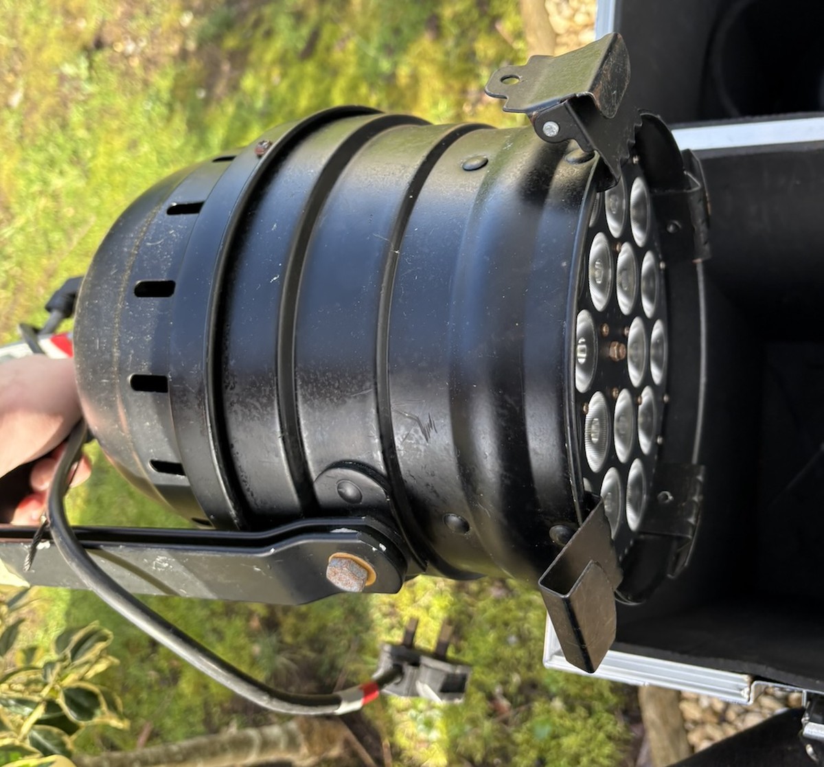 Flightcase in good condition.1 not lighting up, could be a quick fix. Not had time to take a look.